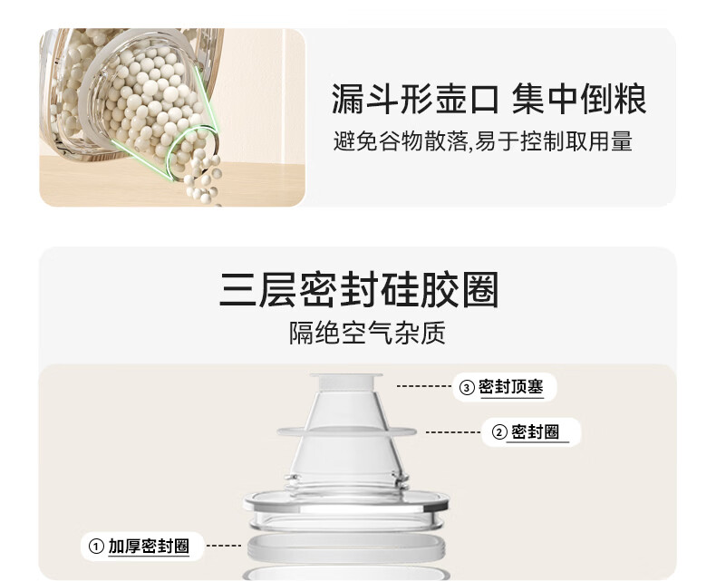 尔思家大米储存容器家用食品级米桶密封防虫防潮杂粮收纳盒大容量米箱 【卡其灰】10斤米桶-【按压出米 带密封圈防虫】