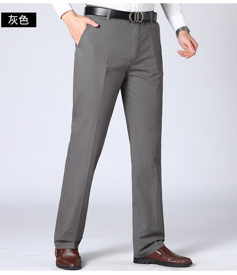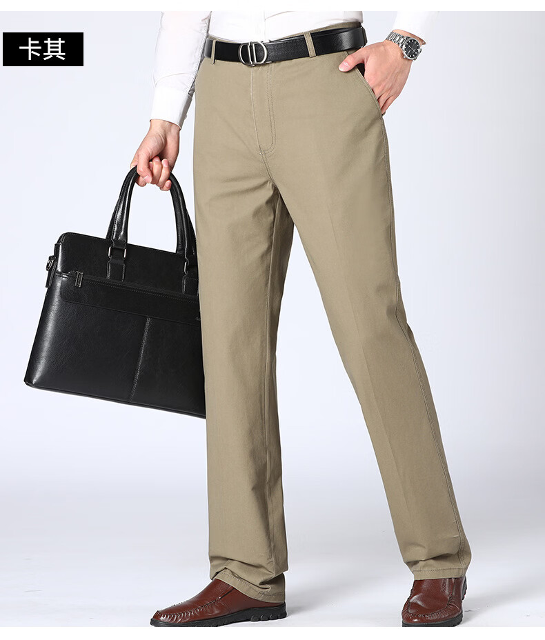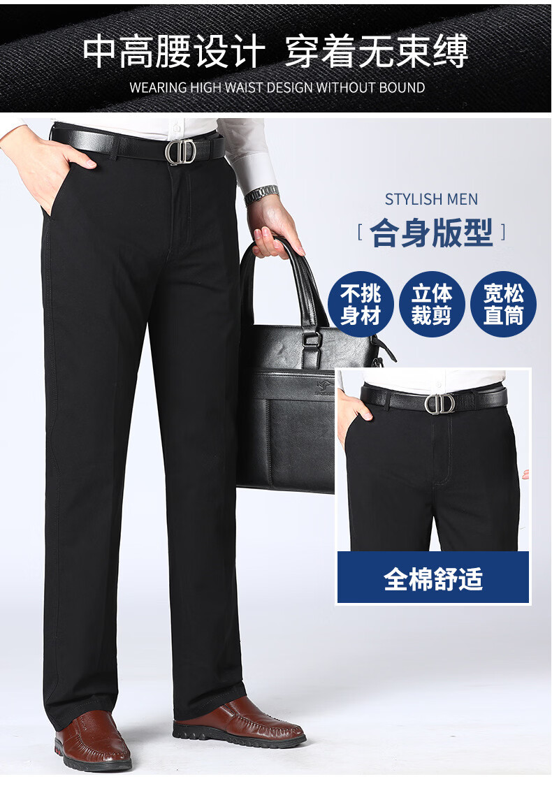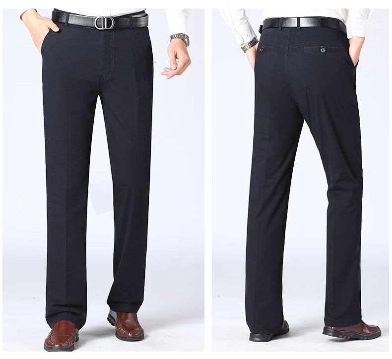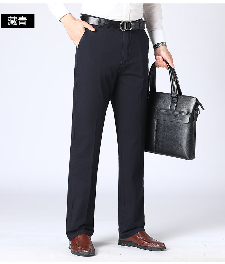 CronetKcnsy2026春款高端男士纯棉休闲裤中老年直筒宽松男裤子爸爸高腰长裤子 藏青色(春秋) 34 【二尺七腰围】