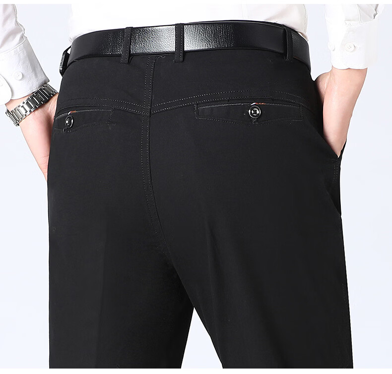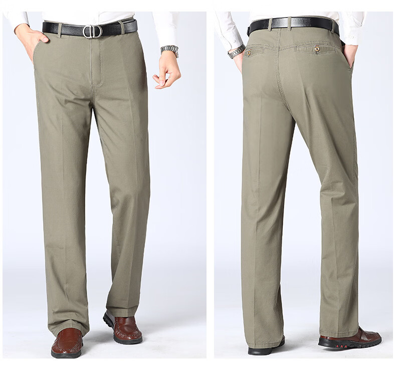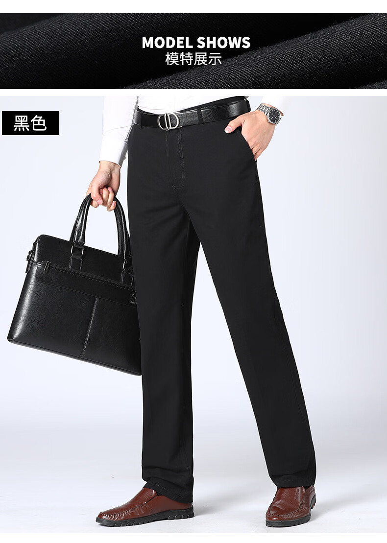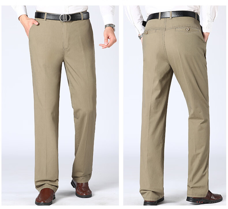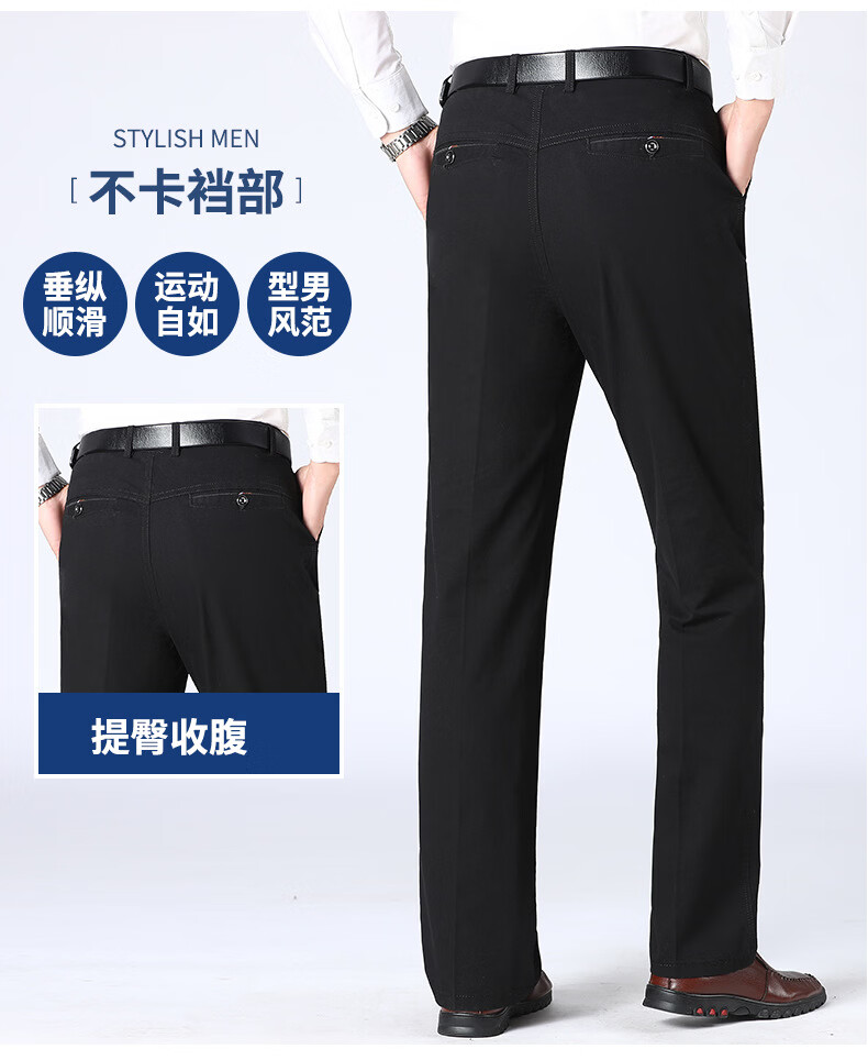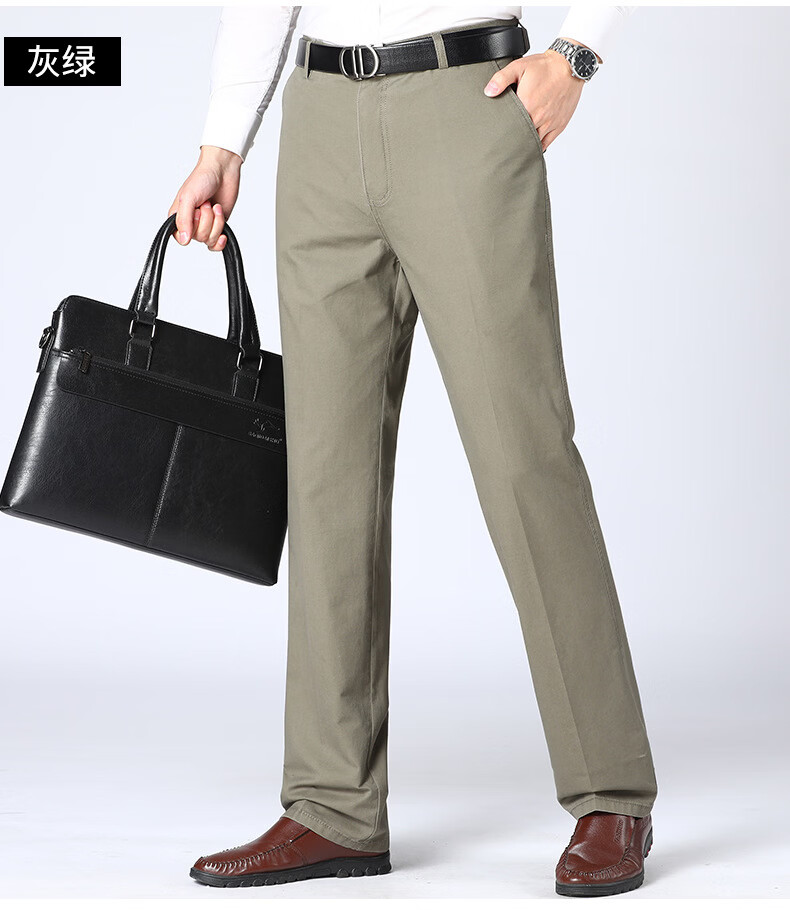 CronetKcnsy2026春款高端男士纯棉休闲裤中老年直筒宽松男裤子爸爸高腰长裤子 藏青色(春秋) 34 【二尺七腰围】