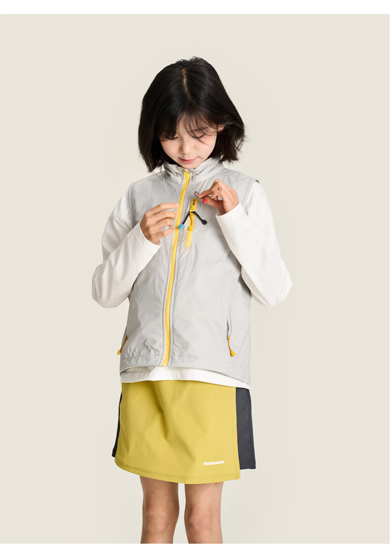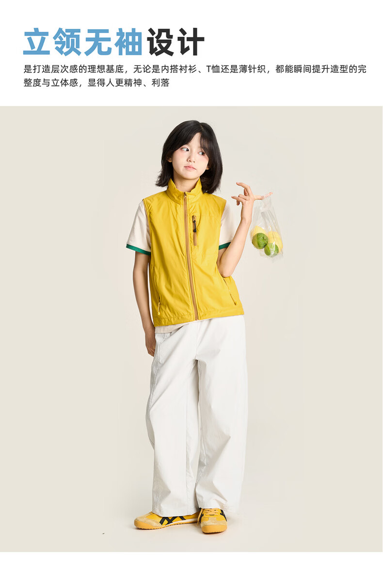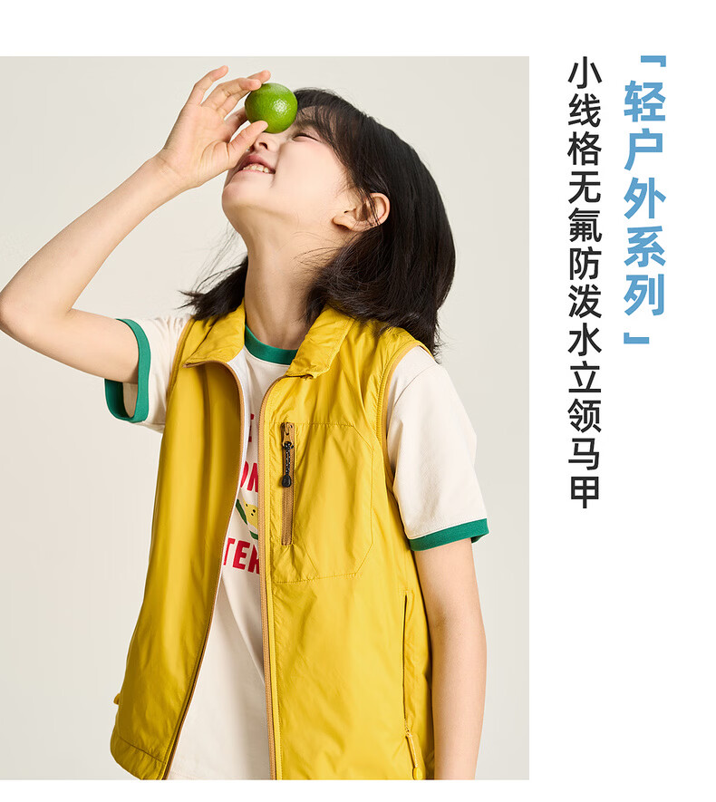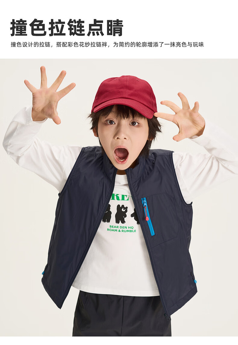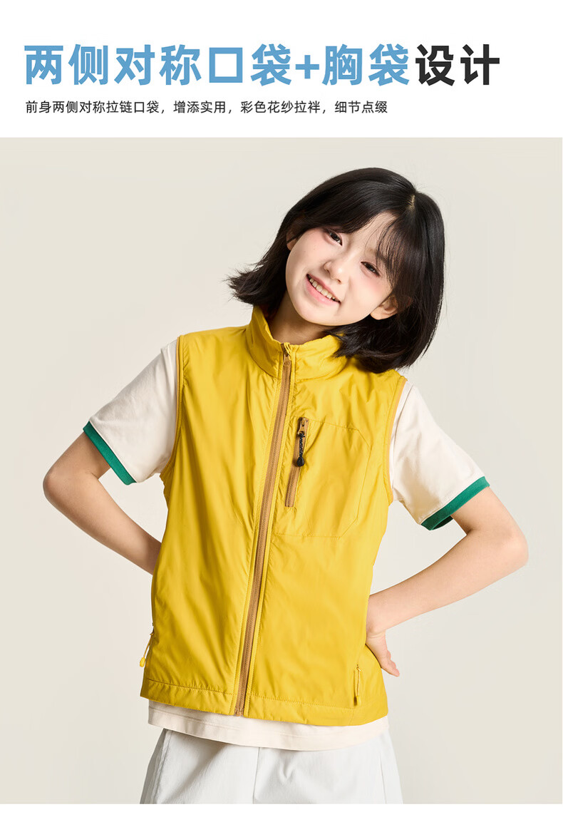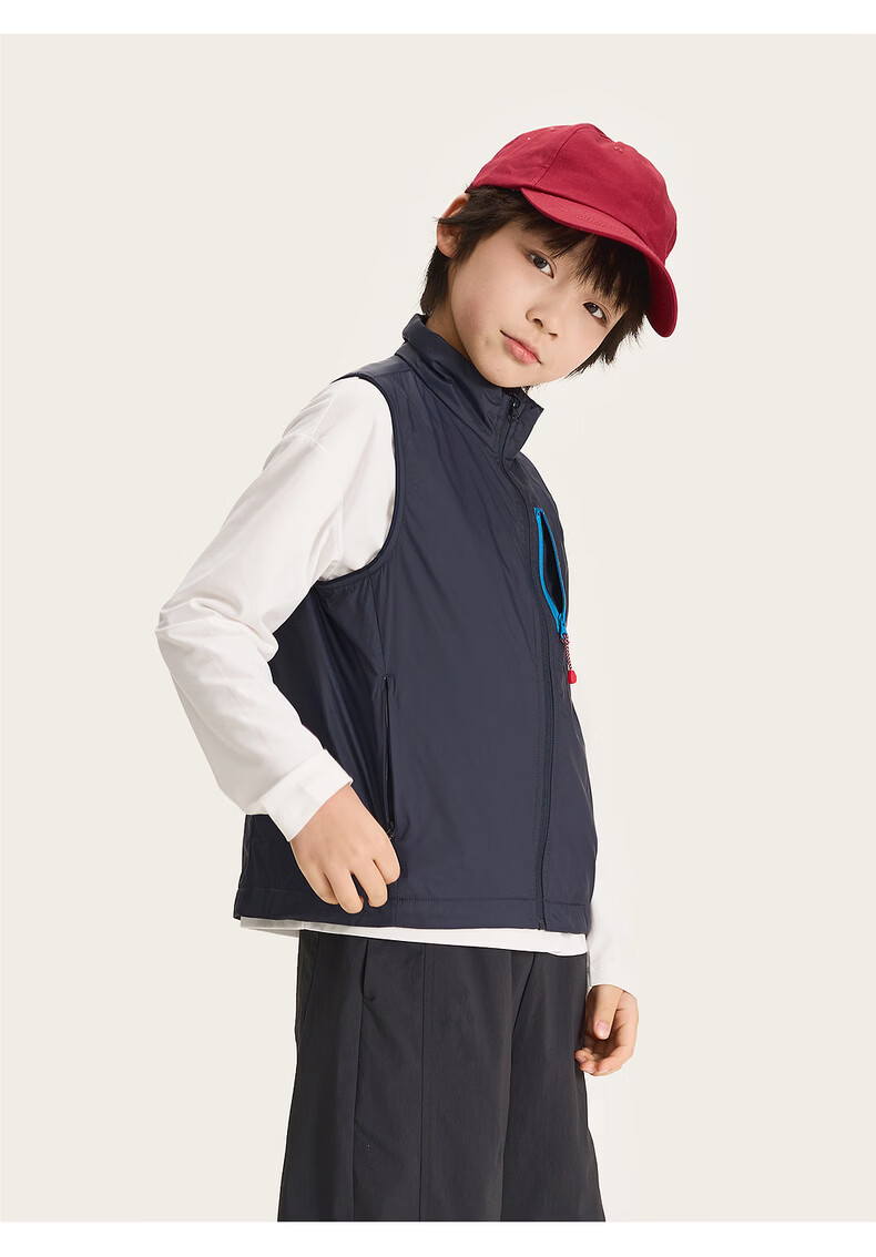 棉叔叔【无氟防水马甲】2026春季户外春季新品女童小线格立领马甲男童 太空灰 130 130