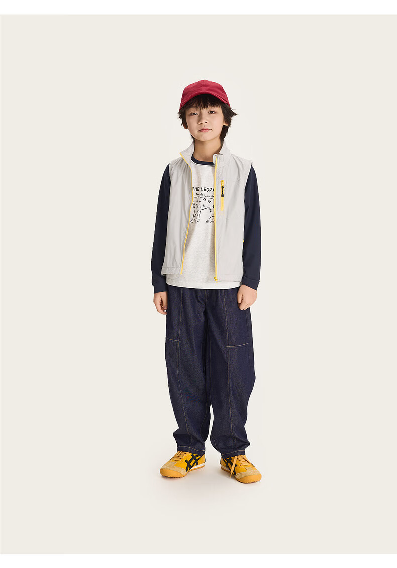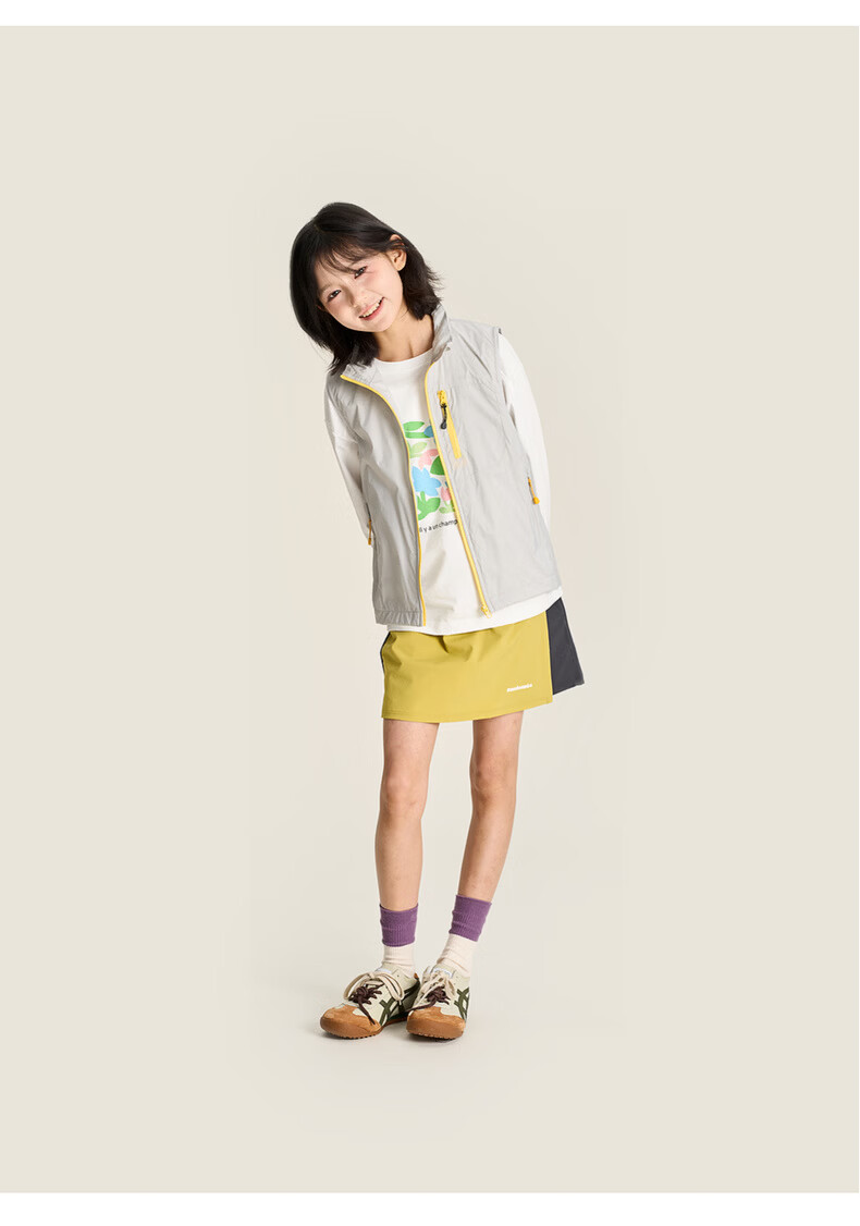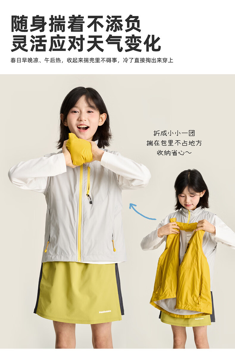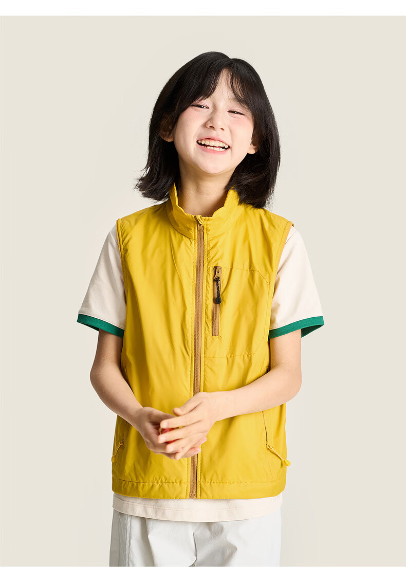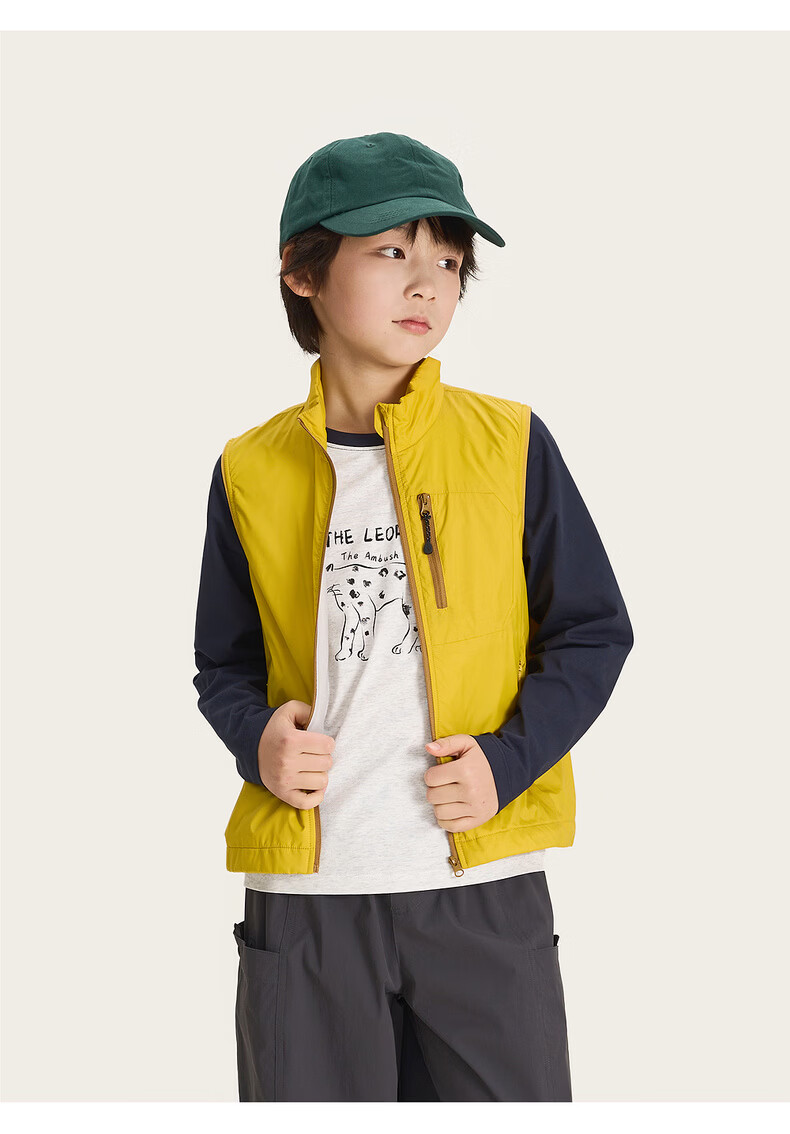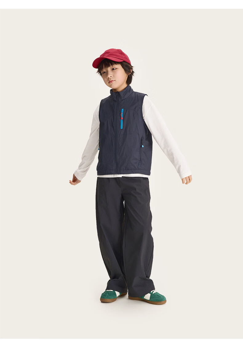 棉叔叔【无氟防水马甲】2026春季户外春季新品女童小线格立领马甲男童 太空灰 130 130