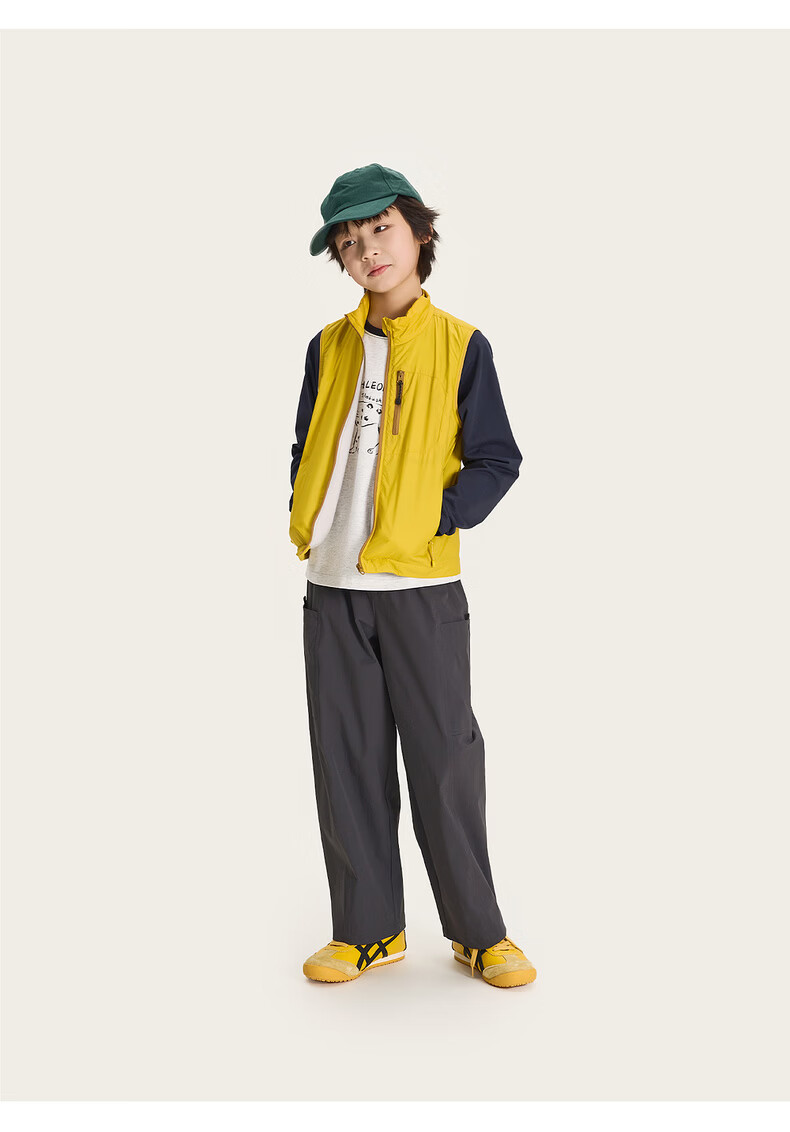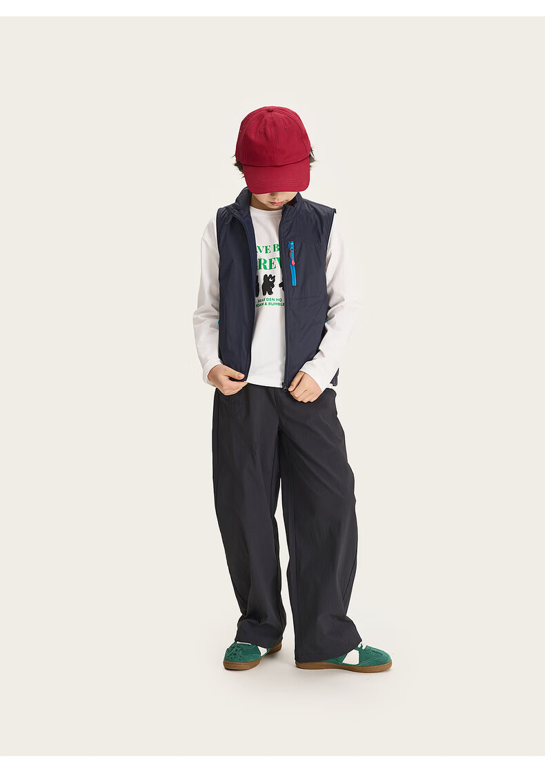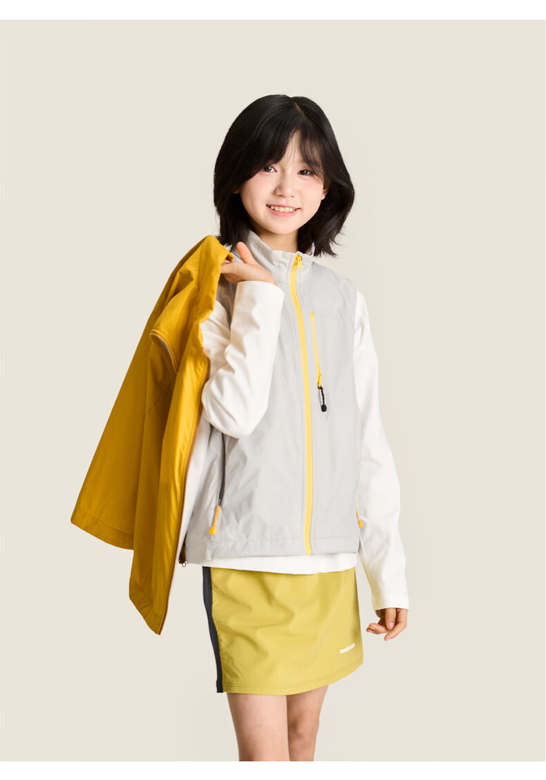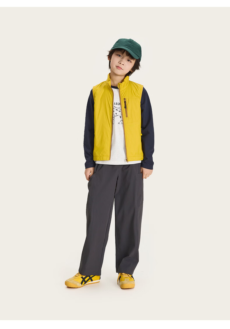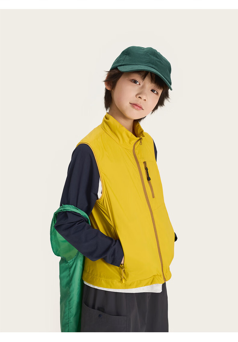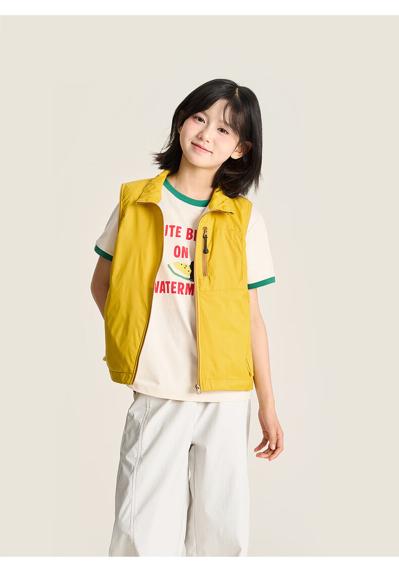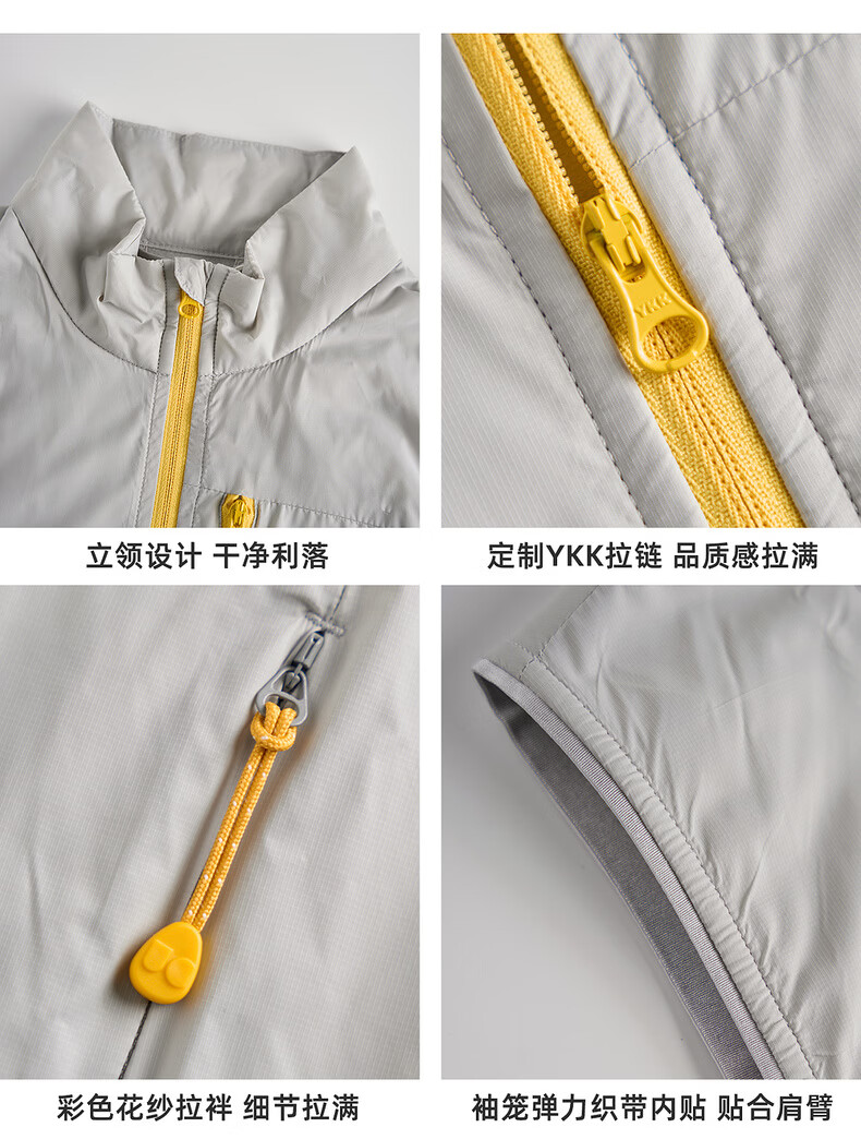 棉叔叔【无氟防水马甲】2026春季户外春季新品女童小线格立领马甲男童 太空灰 130 130