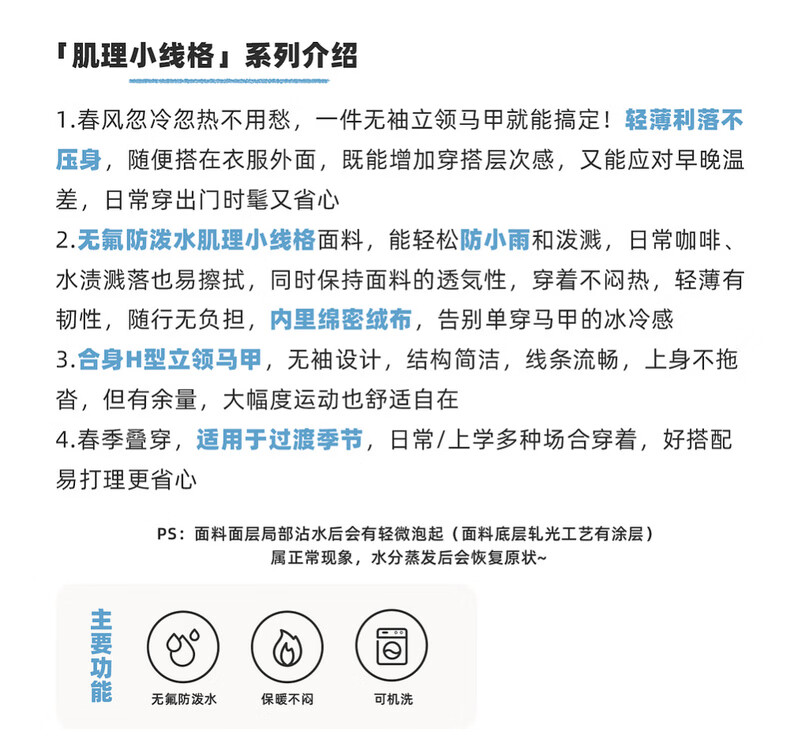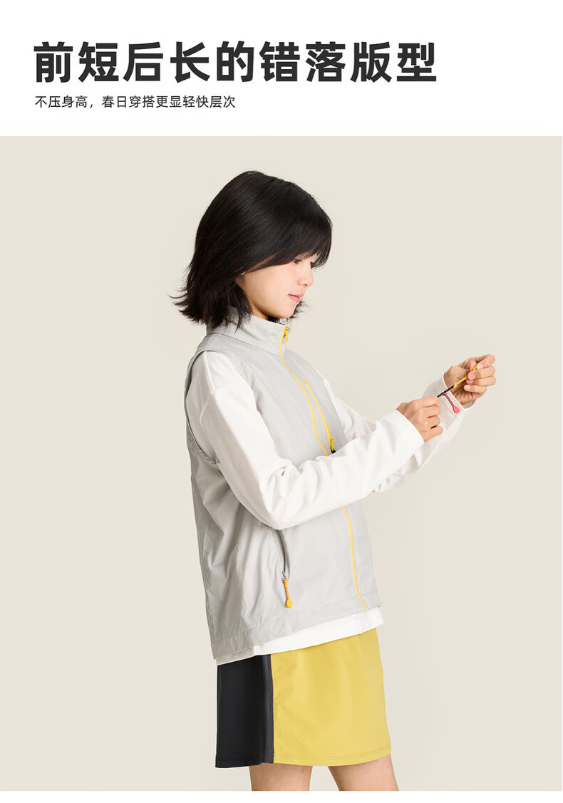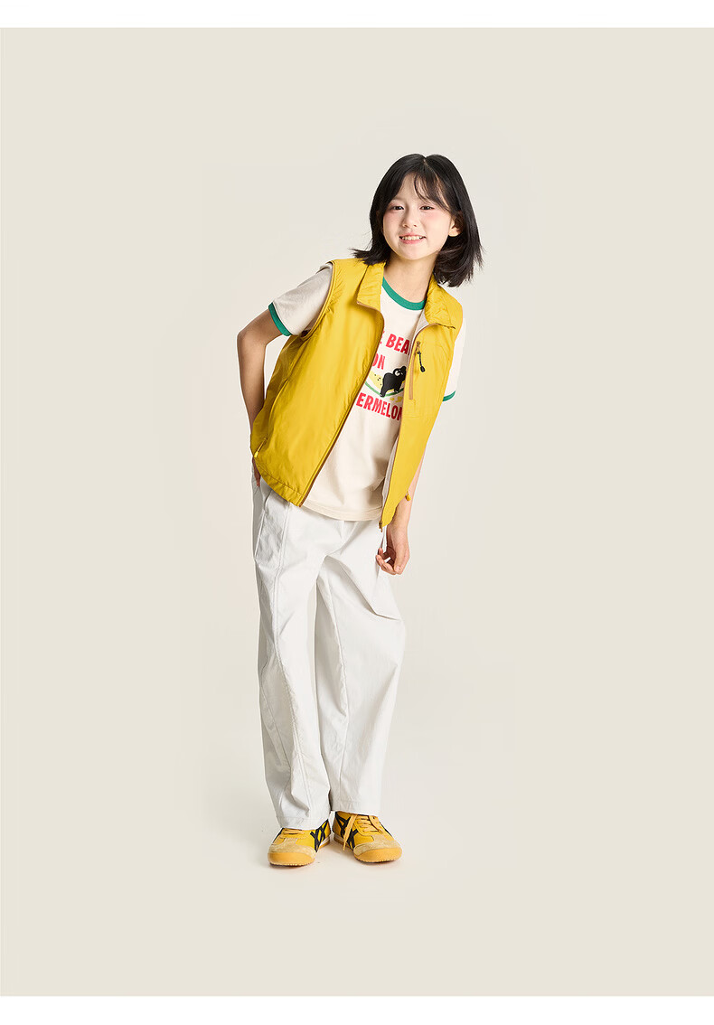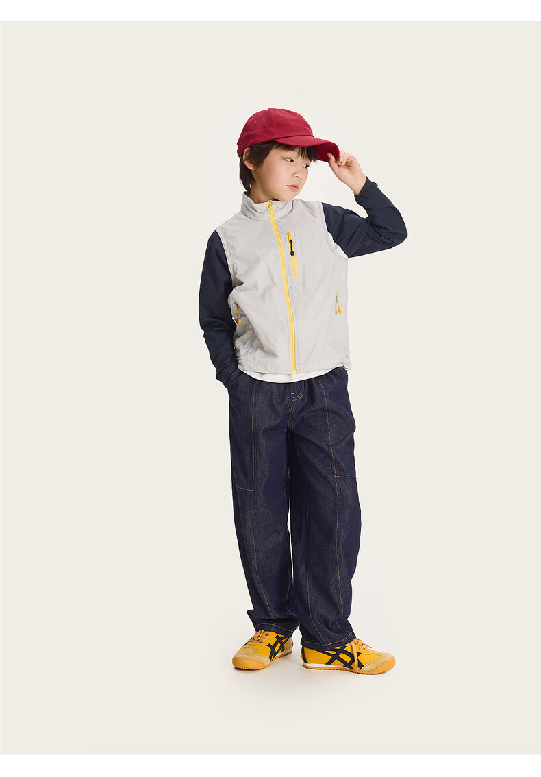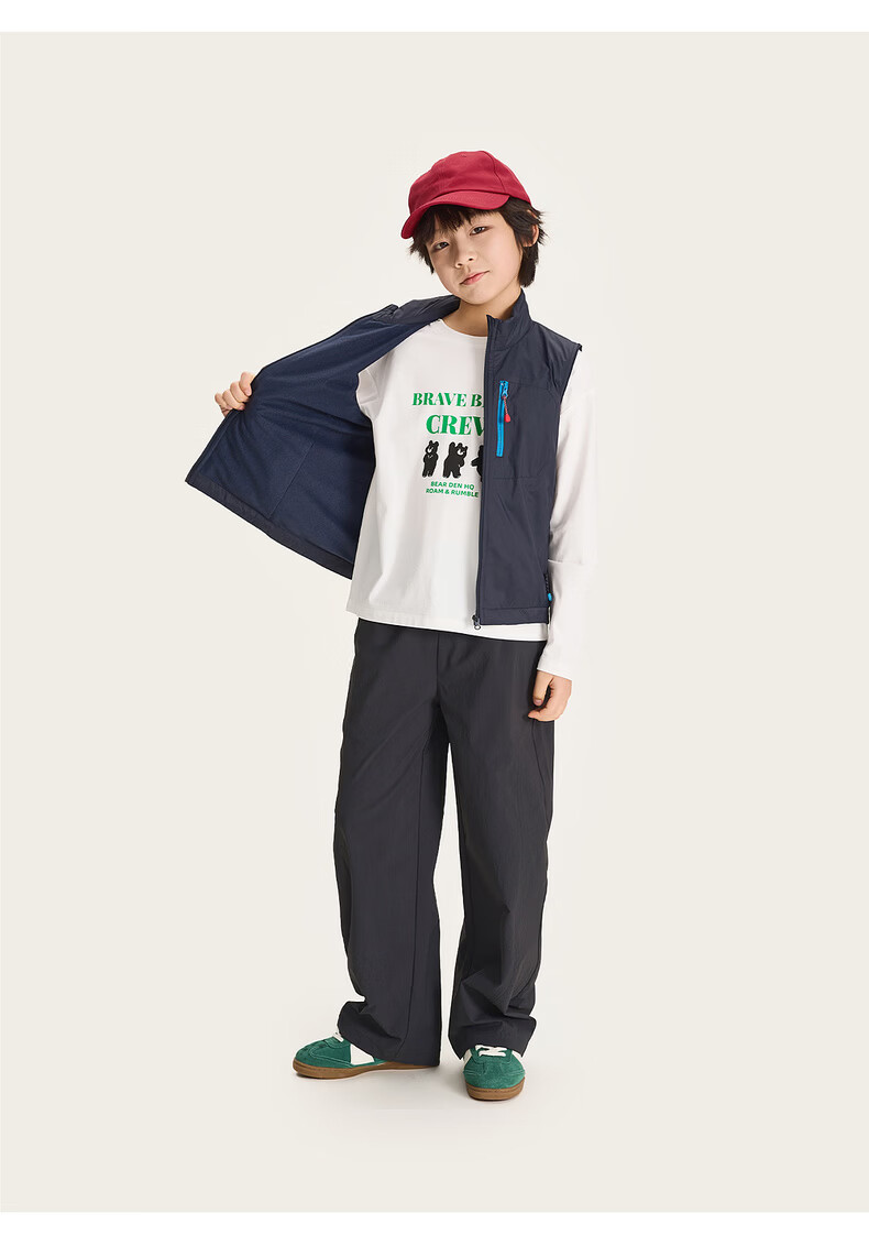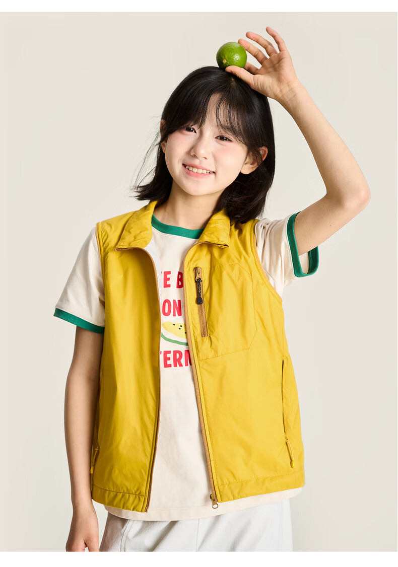 棉叔叔【无氟防水马甲】2026春季户外春季新品女童小线格立领马甲男童 太空灰 130 130