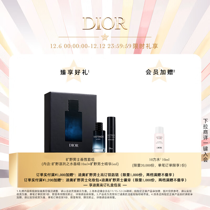 迪奥Dior旷野男士淡香水60ml木质香调香氛留香礼盒装生日礼物送男友
