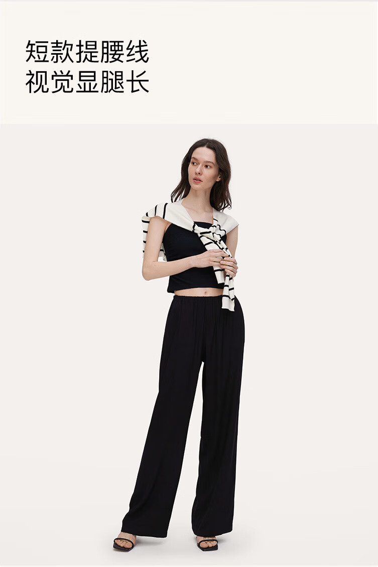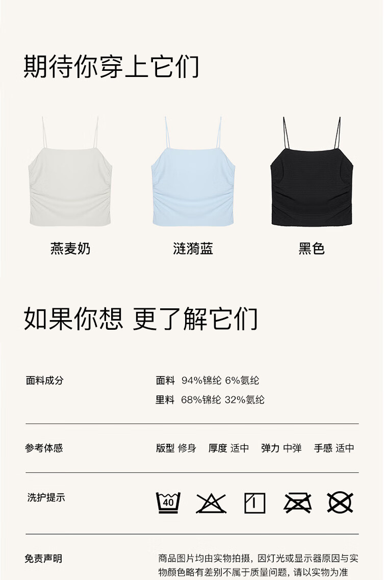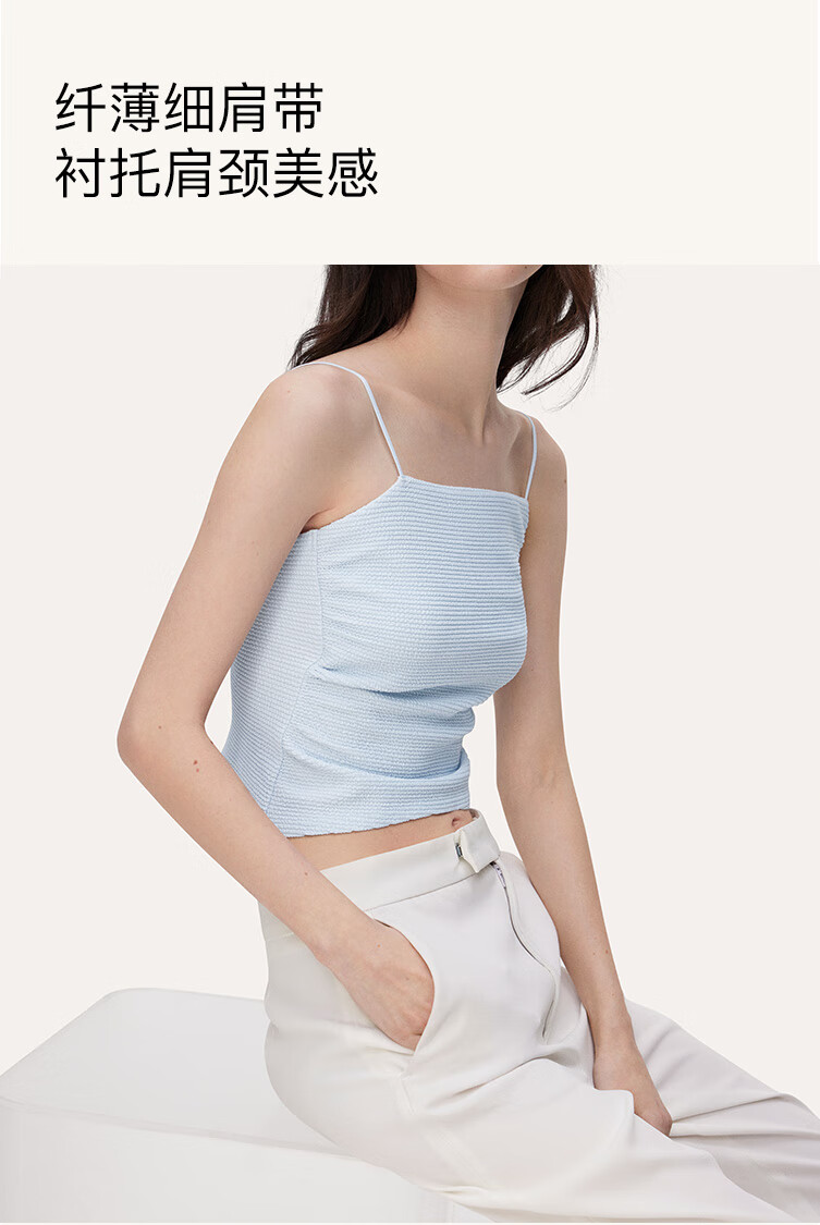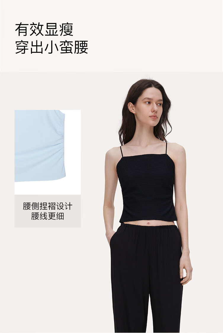 ubras【刘雯同款】甜妹风褶皱肌理抹胸吊带女士背心吊带 黑色 L