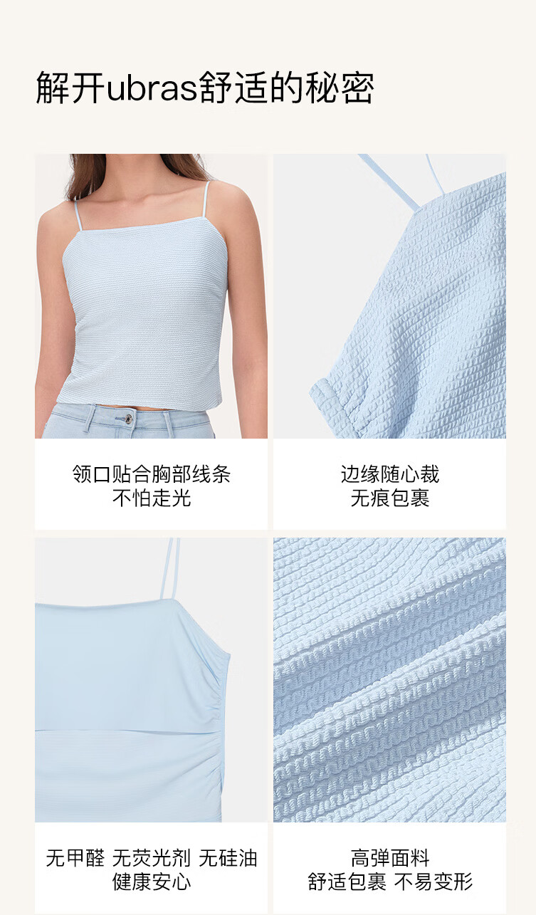 ubras无尺码小奶皮纸片人内衣显瘦显薄无痕隐形背心文胸女热可可标准