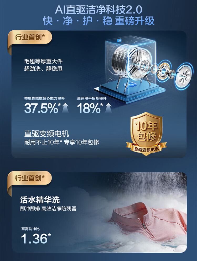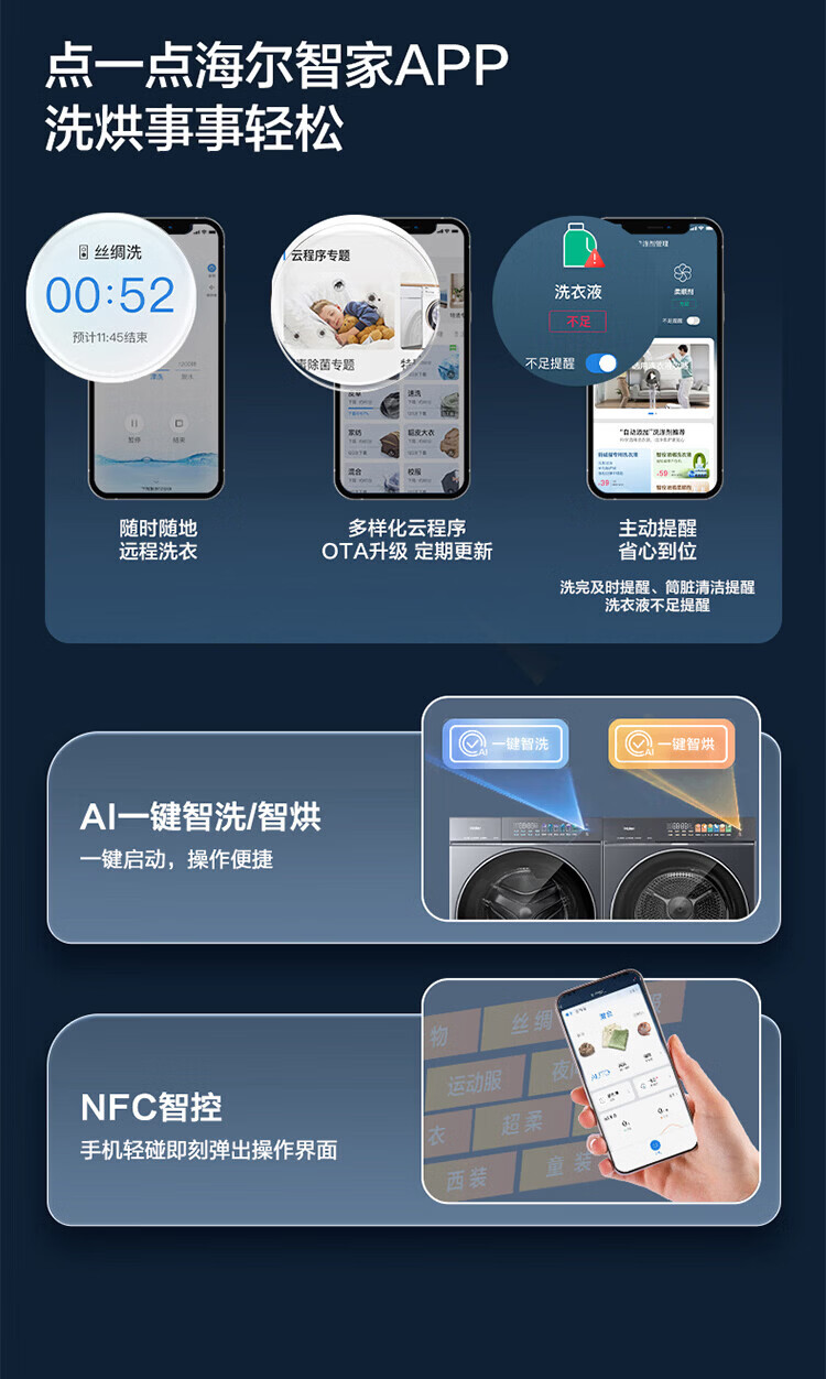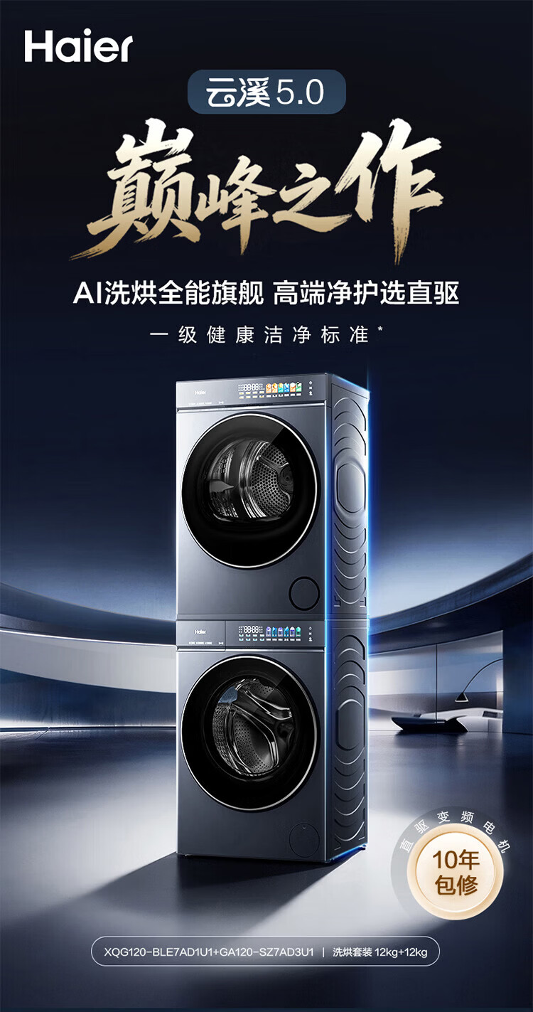 海尔(Haier)云溪5.0滚筒洗烘套装 10KG 全自动滚筒洗衣机+双擎热泵烘干机A直驱双效除菌 D1