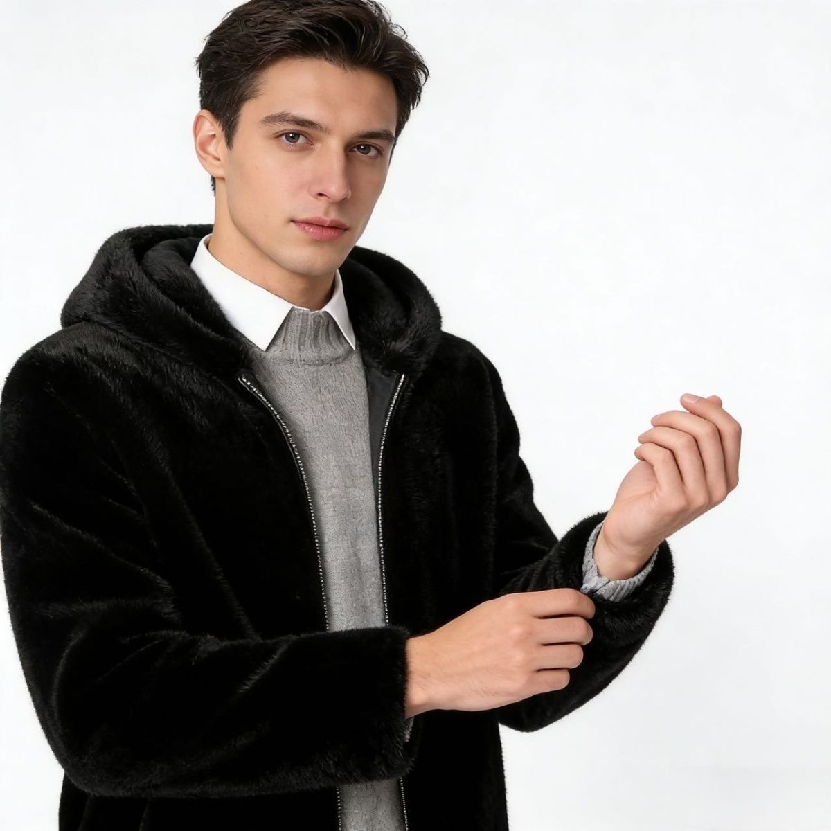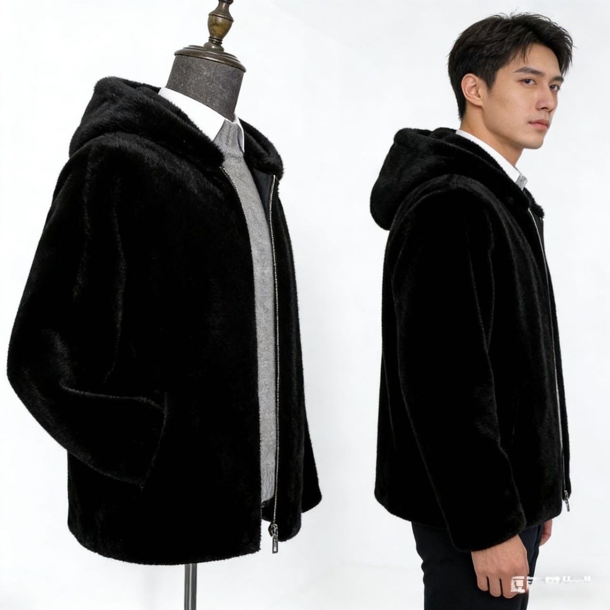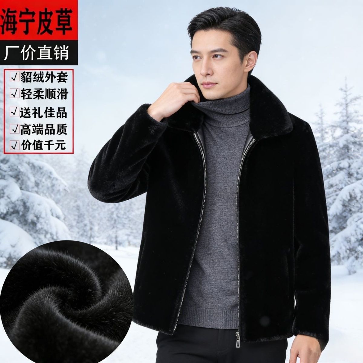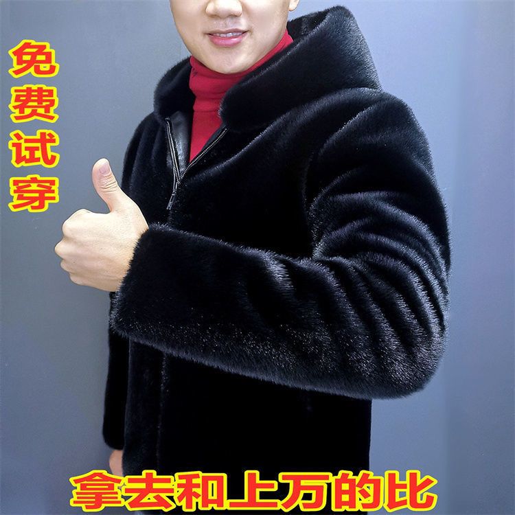 新款毛毛大衣皮草外套男女海宁冬季獭兔毛连帽加厚保暖环保皮草