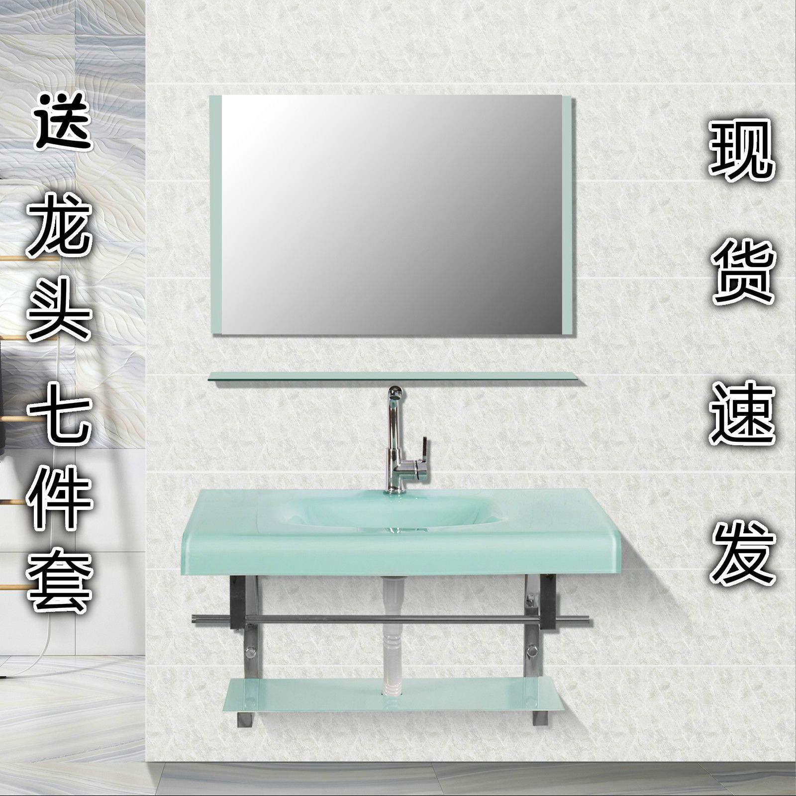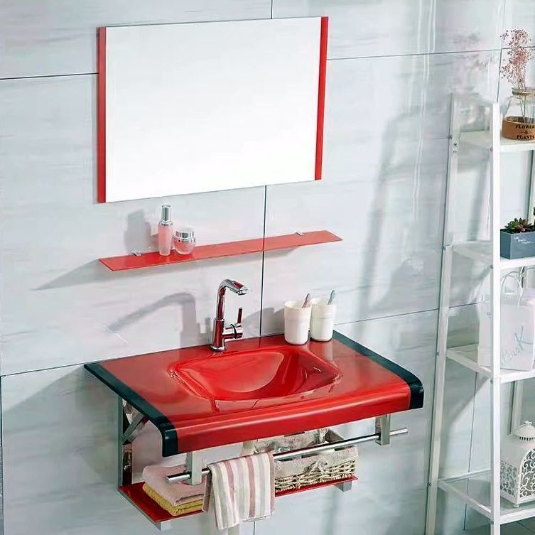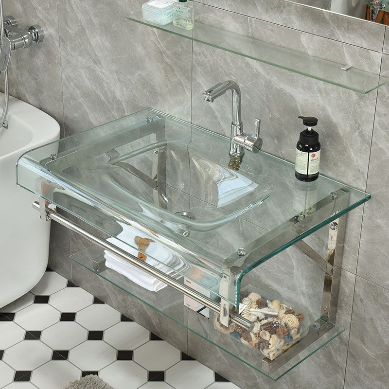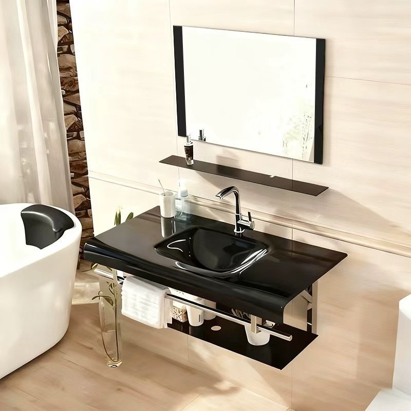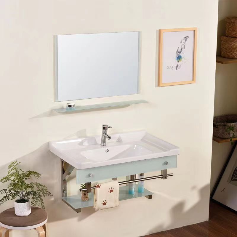 钢化玻璃洗手盆卫生间洗脸盆挂墙式洗手盆组合小户型陶瓷洗漱台盆