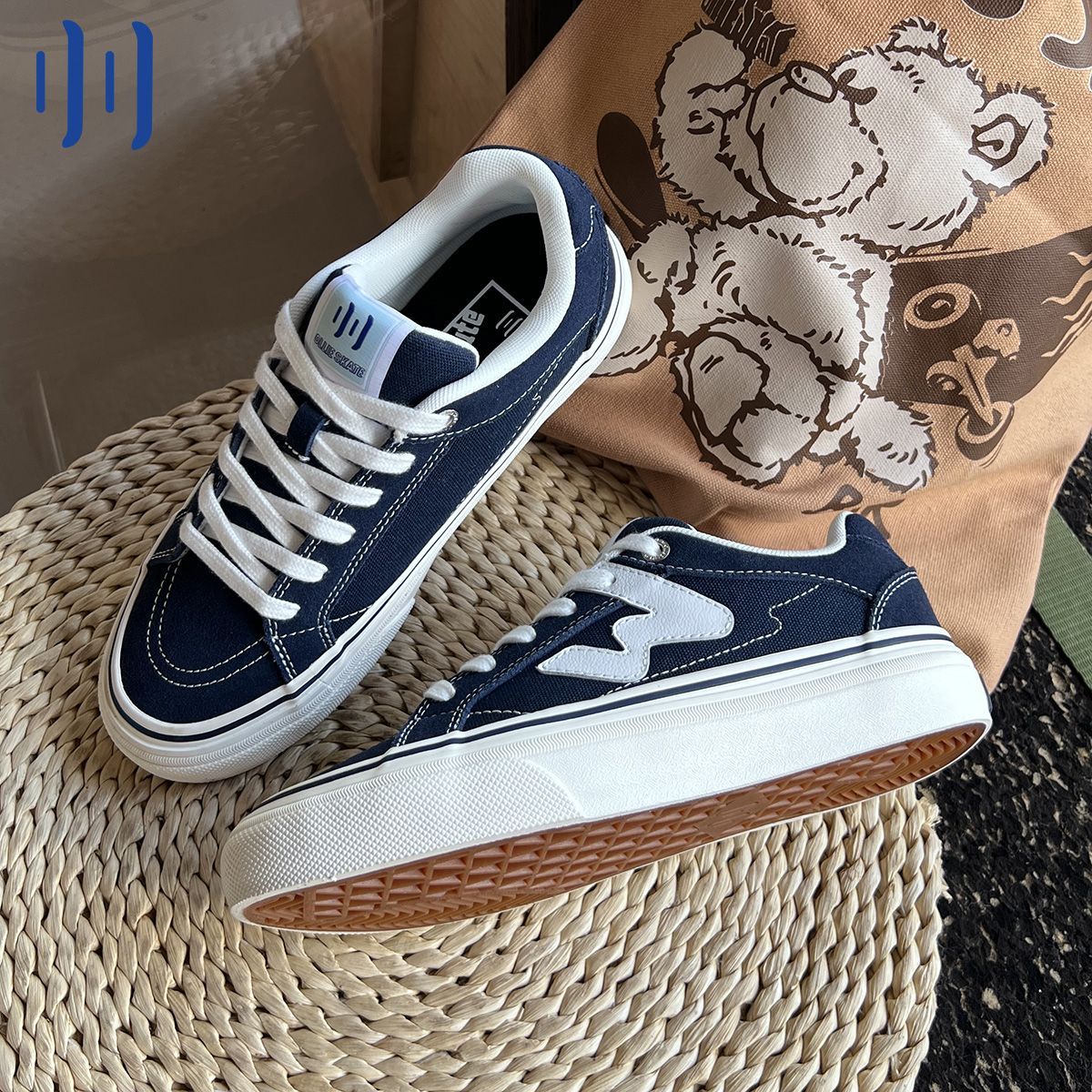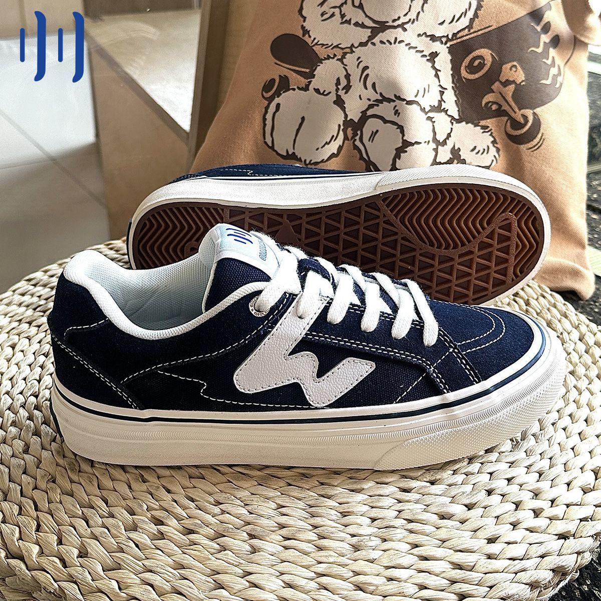 顽刻ollieskate海军蓝春季校园风翻毛皮帆布拼接男女国潮滑板鞋