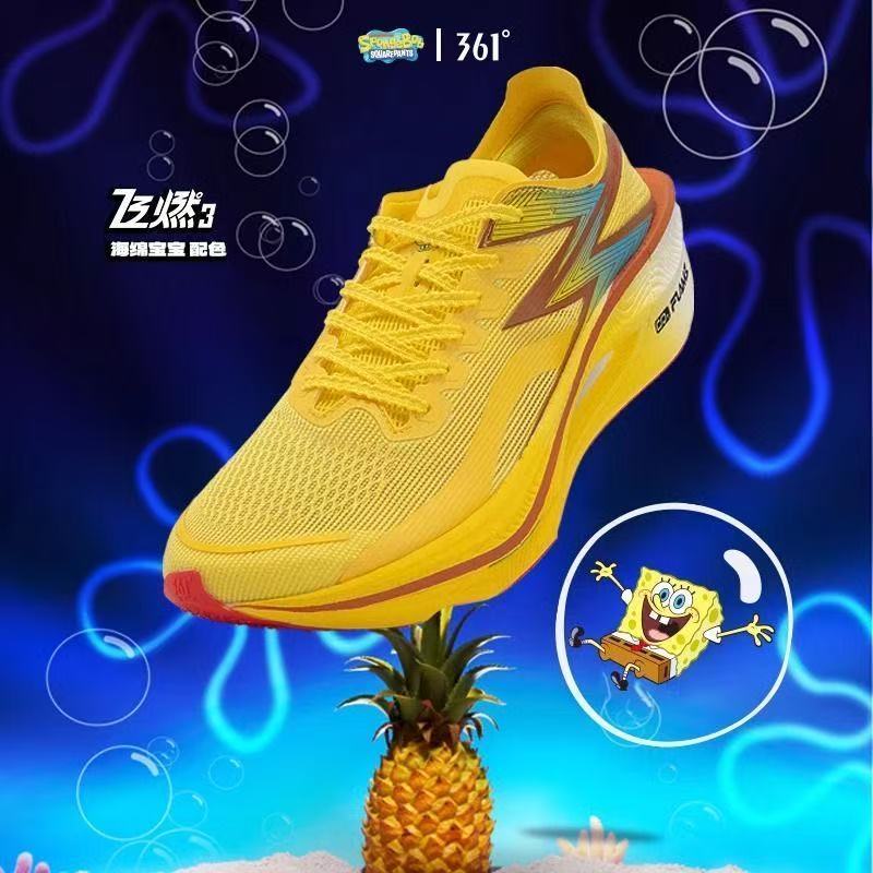 361飞燃3海绵宝宝桃花韵态度专业马拉松全掌碳板跑鞋减震运动鞋男